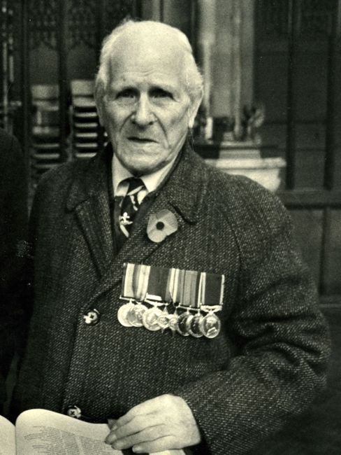 As the years passed Tommy continued to be a recognised and respected figure in the OCA. He became the Honorary Treasurer, although we don't know when, and was a regular attendee at remembrance ceremonies and the 'turning of the leaves'. This was a simple ceremony, held every 2 weeks, in the Manchester Regiment Chapel in Manchester Cathedral. The Chapel contains books holding the names of all the men of the Regiment lost during the 2 world wars. During the ceremony the pages of these books are turned. Tommy and Norman Marsden were two of the veterans who continued to take part in this ceremony well into the 1980s. The photograph shows Tommy at the Chapel on the 11th November 1983.