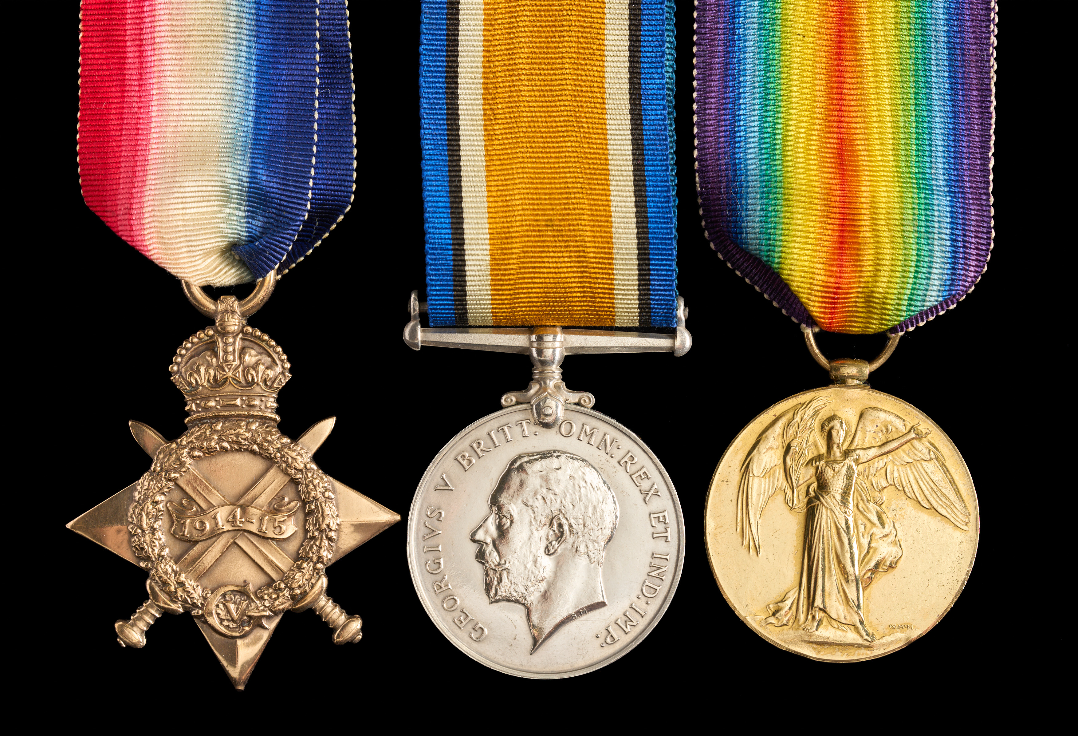 (L to R) 1914-14 Star; British War Medal; Allied Victory Medal
